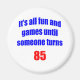 Es macht Spaß und Spiele bis jemand 85 wird. Humorvolles 85. Geburtstagsdesign für die 85-Jährigen, die ein Gefühl von Spaß über ihr Alter haben. Das ist ein großartiges 85. Geburtstagsgeschenk.