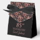 This elegant 85th Birthday Rose Gold Floral Thank You favor box with rose gold flowers on black, the birthday girl's name in a trendy script font, and tied with an beautiful black bow would be perfect for your event. It would be great for a candy station, on a thank you gift table, or at each place setting with a favor. Be sure you order enough for all your guests.