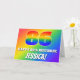 Die Vorderseite dieses aufregenden und fröhlichen Geburtstagskarten-Designs zeigt eine große Zahl "86" mit einem farbenfrohen Regenbogenspektrum, inspiriert Farbverlaufsmuster, zusammen mit der Meldung "HAPPY 86. BIRTHDAY" und einem personalisierten Empfängernamen. Der Hintergrund auf der Vorderseite hat auch ein farbenfrohes Regenbogenmuster. Im Inneren befindet sich eine personalisierte Geburtstagsgrüßbotschaft, oder man könnte sie löschen und leer verlassen werden, wenn eine Nachricht von Hand geschrieben werden soll. So eine positive, personalisierte Geburtstagskarte wird zum Feiern des sechsundachtzigsten Geburtstags geschickt. [~Z0000585]