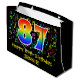Dieses lustige, lebendige und farbenfrohe Geburtstagsgeschenk-Design zeigt eine große Zahl "87" mit einem inspirierten Regenbogenspektrum-Muster, zusammen mit der Meldung "Happy 87 th Birthday" und einem anpassbaren Namen. Ein Teil des Hintergrundes weist verschiedene Musiknoten und Symbole mit verschiedenen Farben und Größen auf. Eine Geschenktasche wie diese könnte eine lustige Art sein, ein Geburtstagsgeschenk oder ein Geschenk für einen Sänger, einen Musikkomponisten, einen Musiker oder jemanden, der seinen 87. Geburtstag feiert, zu verpacken. [~Z0000425]