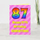 Die Vorderseite dieses fröhlichen und fröhlichen 87. Geburtstags Thema Grußkarte Design zeigt eine große Zahl "87" mit einem farbenfrohen Regenbogenspektrum inspirierte Farbverlauf. Es enthält auch die Meldung "Happy 87 th Birthday", und einen benutzerdefinierten Empfänger-Namen. Die Vorderseite ist mit einem lustigen Muster aus hellrosa und dunkelrosa Streifen mit liebevollen rosa Herzformen gestaltet. Im Inneren befindet sich eine individuell anpassbare Geburtstags-Grußnachricht, oder vielleicht kann gelöscht und links werden, wenn eine Nachricht von Hand geschrieben werden soll. Eine individuell anpassbare Geburtstagskarte wie diese könnte eine lustige Art sein, jemandes siebenundachtzigsten Geburtstag anzuerkennen. [~Z0000416]