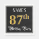 Dieses elegante und opulente Geburtstagspapier serviert einen editierbaren Namen und die Nachricht "87. Geburtstagsparty". Die große Zahl "87." hat ein in Gold inspiriert Farbmuster von Imitation/Imitaten, die Wörter "Geburtstagsparty" sind im extravaganten Skriptstil gehalten, und der Hintergrund ist standardmäßig schwarz gefärbt (auch wenn er angepasst werden kann). Verzierte, luxuriöse Papierservietten wie diese können bei einer Geburtstagsfeier/einem Party zur Feier des siebenundachtzigsten Geburtstages von jemandem nützlich sein. [~Z0000565]