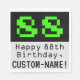 Dieses nerdige und geeky Geburtstagsthema Papier Serviette Design verfügt über eine große grüne Vintage Computerspielstil-Nummer "88" auf einem schwarzen Hintergrund. Es enthält auch die Geburtstagsgrüßbotschaft "Happy 88. Geburtstag", und einen Namen, der angepasst werden kann. So lustige Papierservietten könnten in einem Party zum 88. Geburtstag eines Ingenieurs, eines Computersystemverwalters oder jemandes verwendet werden, der Vintage Videospiele schätzt. [~Z0000404]