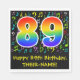 Dieses lustige, farbenfrohe und lebendige Geburtstagsthema Papier Serviette Design zeichnet sich durch eine große Zahl "89" mit einem inspirierten Regenbogenspektrum-Gefälle, zusammen mit der Meldung "Happy 89. Geburtstag", und einen benutzerdefinierbaren Namen aus. Ein Teil des Hintergrundes hat farbenfrohe Musiknoten und Symbolmuster. Spaß, maßgeschneiderte Papierservietten wie diese können bei einer Geburtstagsfeier zu Ehren eines Musikers, eines Sängers, Komponisten oder eines anderen 89. Geburtstags genutzt werden. [~Z0000421]