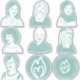 8" Blatt türkisfarbene Aufkleber mit sieben Zeichen und zwei Flecken.