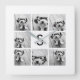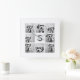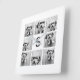 8 Foto Collage Custom Monogramm Schwarz und Weiß Quadratische Wanduhr
