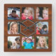 8 Foto Collage Holzmuster Quadratische Wanduhr