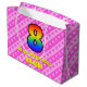 Dieses lustige und fröhliche 8. Geburtstagsgeschenk-Geschenksack-Design hat eine große Zahl "8" mit einem inspirierten Regenbogenspektrum. Es enthält auch die Meldung "Happy 8th Birthday", gefolgt von einem anpassbaren Namen. Der Hintergrund ist mit einem dunkelrosa und hellrosa Streifen mit liebevollen rosa Herzformen gestaltet. Eine Geschenktasche wie diese kann verwendet werden, wenn Geschenke verpackt oder Geschenke an jemanden gegeben werden, der seinen achten Geburtstag feiert. [~Z0000414]