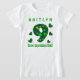9. Kleeblatt-Zahl-und Herz-Name-Kleeblatt-und Herz-dunkelgrünen des Hintergrundes des Geburtstags-9-Jährige Geburtstagidee Shirt WEISSE mit einer großen Zahl mit Kleeblätter Muster und Spaßbeschriftung für den Geburtstag eines spezielles Kindes. Addieren Sie den Namen der Süssetorte! Seien Sie auch Spaß für jemand, das an St Patrick Tag geboren ist. Aller Text ist kundengerecht.