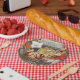 Teller zum Coffee-Thema für einen Brunch oder ein Party zum Frühstück. Geben Sie ein paar Pakete als Geschenk an Ihre Kaffee liebende Freundin oder Gastgeberin. Whimsical, geschichtet, ein Gesprächsstück.