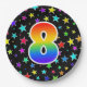 Dieses farbenfrohe, lustige und fröhliche Papier-Plattendesign zeichnet sich durch eine große Zahl "8" mit einem inspirierten Regenbogenspektrum aus. Der Hintergrund weist ein Muster von bunten Sternformen auf. Teller dieser Art können bei einem Party zum 8. Geburtstag eines Mannes, zum 8. Geburtstag eines Paares oder zu einem 8. Geburtstag oder einem anderen 8. [~Z0000493]