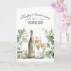 Watercolor wine bottle and two wine glasses, set against a soft green floral frame of ivy and eucalyptus, for the couple's 8th wedding anniversary.