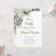 Eine 90. Geburtstagsfloral Personal Monogram Geburtstagseinladung. Das Alter kann für jedes Alter geändert werden, nicht nur für 90. Hübsche weiße Blume und blaues Blattwerk. Die Informationen können leicht auf Ihre eigenen persönlichen Informationen geändert werden, wobei das Wort Überraschung entfernt werden kann, das Alter geändert wird und das Geburtsdatum entfernt wird, wenn Sie gewollt haben. Ändern Sie das Foto in Ihr eigenes.