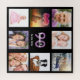 Ein Geschenk für den 90. Geburtstag einer Frau, die ihr Leben mit einer Collage von 8 deiner Fotos feiert. Vorlagen für einen Namen, 90 Jahre und ein Datum. Geburtsdatum oder das Datum des Jahrestages. Lila und weiße Buchstaben. Chic schwarze Hintergrundfarbe.