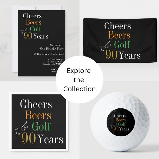 90th Birthday Golf Party Cheers Beers Black GoldDesignt von Only The Moon