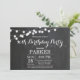 90. Geburtstag Einladung mit String Lights Chalkboard Hintergrund. 13. 15. 16. 18. 21. 30. 40. 50. 60. 70. 80. 90. 100. Jedes Alter. Für weitere Anpassungen klicken Sie bitte auf die Schaltfläche "Anpassen" und verwenden Sie unser Designwerkzeug, um diese Vorlage zu ändern.