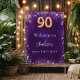 Ein Begrüßungspposter für eine mädchenhafte und glamouröse 90. Geburtstagsfeier. Ein tiefer lila Hintergrund mit Imitaten Glitzern. Die lila Farbe ist ungleichmäßig. Personalisieren und einen Namen.