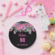 90. Geburtstag pink schwarz Aquarellblume Pappteller