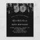 Eine moderne, stilvolle und glamouröse Einladung zu einer 90. Geburtstagsfeier. Ein schwarzer Hintergrund, mit silbernen Konfetti dekoriert. Der Name ist mit einem modernen handgeschriebenen Stilskript geschrieben. Personalisieren Sie Ihre Party-Daten und fügen Sie sie hinzu. Nummer 90 ist mit einem angesagten Ballon-Stil-Schriftart, Leopardenmuster geschrieben.