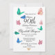 Ein 90. Geburtstag Schwarz-Weiß Streifen Schmetterling Monogram Birthday Einladung. Das Alter kann für jedes Alter geändert werden, nicht nur für 90. Ein hübscher Streifen Hintergrund vorwiegend in Schwarz und Weiß. Die Informationen können leicht auf Ihre eigenen persönlichen Informationen geändert werden, wobei das Wort Überraschung entfernt werden kann, das Alter geändert wird und das Geburtsdatum entfernt wird, wenn Sie gewollt haben. Die Rückseite hat den blumigen Hintergrund mit einem persönlichen Monogramm, das das gleiche elegante Skript wie die Einladung verwendet.