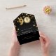 Ein schwarzer Hintergrund, mit goldenen Sternen dekoriert und eine große Zahl von 90 in Imitat Gold. Personalisieren und fügen Sie ein Foto, Name, Party, UAWG, Rücksendeadresse und Namen.