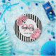 90. Geburtstag schwarze Streifen rosa Blumen Klass Pappteller