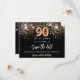 Eine junge und trendige Save the Date für eine 90. Geburtstagsfeier. Ein schwarzer Hintergrund mit goldenem Imitat-Glitzer. Personalisieren und fügen Sie Datum und Namen, Text. Der Text: Save the Date ist mit einem großen angesagten, handgeschriebenen Stilskript geschrieben.