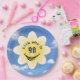 Eine Grafik mit weißer Blume mit leuchtendem Sonnenschein, Lächeln und Augenbrauen auf blauem Himmelshintergrund für eine 90. Geburtstagsfeier. Text kann geändert werden.
