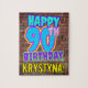 Dieses lustige Geburtstagsthemendesign enthält die Meldung "HAPPY 90 TH BIRTHDAY", die ein lebendiges, farbenfroh, graffiti und urban street art inspirierte Aussehen sowie einen benutzerdefinierbaren Empfängernamen hat. Der Hintergrund weist ein Muster auf, das durch das Aussehen einer Ziegelwand inspiriert wird. Ein lustiges, individualisierbares Geburtstagsrätsel wie dieses könnte zum Feiern des neunzigsten Geburtstages von jemandem gegeben werden. [~Z0000532]