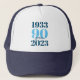 A bold and striking 90th birthday (or any age) baseball hat. This special milestone cap consists of birth and birthday date in dark blue typography - with the age highlighted in light blue.