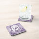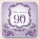 Design im Wappen-Stil in lila Farben mit großer 90. + "BIRTHDAY FEIERUNG" auf einem Band. Design auf quadratischer Getränkeküste mit Namen. Sie können den Namen (Farbe, Schriftart, Größe und Position) einfach ändern, indem Sie auf die Schaltfläche Anpassen klicken. Erhältlich mit Design für 60., 70., 80., 95. Geburtstag. Entsprechende Geburtstagseinladung, Geburtstagsgeschenk Save the Date, Geburtstagskarte (Spiralheft), Vorgeschenkschachtel, Geschenktafel, Party (Papierserviette und Papiertüte), Kissen, Tasse und andere Geburtstagsgeschenke für Großmütter.
