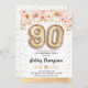 90. Geburtstagsfeier Einladung. Elegantes Design in Imitaten Glitzer Gold mit Blumenakzent. Einladende Karte mit Goldnummer 90 Ballons, Skript-Schriftart mit Konfetti. Rosa, weiß, blaue Koralle. Ideal für eine stilvolle Feier am neunzigsten Tag. Nachricht, wenn du ein Alter brauchst.