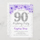 90. Geburtstagsparty - Lila Weißes Silber Einladung