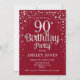 90. Geburtstagsfeier Einladung. Elegantes Design in dunkelrot und Imitat Glitzer Silber. Features stilvolle Skript-Schriftart und Konfetti. Nachricht, wenn du ein Alter brauchst.