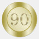 90. Geburtstagsparty Sticker auf goldenem Hintergrund.