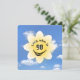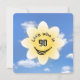 Eine Grafik mit weißer Blume mit leuchtendem Sonnenschein, Lächeln und Augenbrauen auf blauem Himmelshintergrund für eine 90. Geburtstagsfeier. Alle Texte können geändert werden.