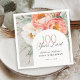 Diese hübsch elegante und so charmant, pfirsichfarbene und weiße Aquarellblume Geburtstagsnapkin feiert "100 Jahre Loved". Es ist ein süßes Gefühl, den Gast an Ehre zu erinnern, wie sehr sie geliebt und bewundert werden. Das hübsche Design besticht durch einen wunderschönen Strauß aus Pfirsich und Elfenbein, weiße Aquarellbäume, Eukalyptusbäume und das hintere Grün auf einem neutralen, hellgrünen Hintergrund. Trendige Gesichtspflege und ein bogenförmiger Rahmen machen Ihren Pop stilvoll. Personalisieren Sie die leicht zu bedienende Textvorlage mit Ihren Informationen.