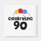 Drei primäre Farbballons und schwarzer Text, der auf 90. Geburtstagskarten, T - Shirt, Tasse und mehr "Feiern 90" steht.