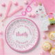 90. Party Random Number Pattern Rosa/Weiß Pappteller