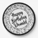 90. Party Random Number Pattern Schwarz/Weiß Pappteller