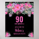 Elegantes Design für eine 90. Geburtstagsfeier mit einem rosa "90 und fabelhaft" und einem prägnanten Namen, der von einer femininen Aquarell-Blume auf weißem Hintergrund verziert wird. Anpassen von Alter, Text, Name und Hintergrundfarbe.