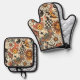 90s Happy Faces Sun Flowers Pattern Ofenhandschuh & Topflappen-Set