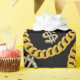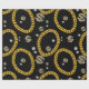 A hip hop 90's music style gold Cuban link chain theme design perfect for birthday parties, home decor, personalized gifts with a hip hop rap theme. Hand drawn Cuban link chain and accessories on a black background. Ideal for 90's theme hip hop and rap enthusiasts, black and gold designs and anyone who loves old school illustrations.