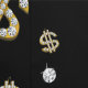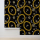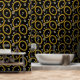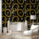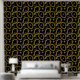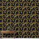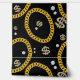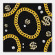 A hip hop 90's music style gold Cuban link chain theme design perfect for birthday parties, home decor, personalized gifts with a hip hop rap theme. Hand drawn Cuban link chain and accessories on a black background. Ideal for 90's theme hip hop and rap enthusiasts, black and gold designs and anyone who loves old school illustrations.