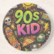 90s Kids Grunge Seamless Pattern: Pizza, Skeletons Getränkeuntersetzer