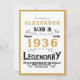 For those born in 1936 and celebrating their 90th birthday we have the ideal birthday party invitation with a vintage feel. The white background with a black and gold vintage typography design design is simple and yet elegant with a retro feel. Easily customize the text of this birthday gift using the template provided.