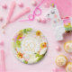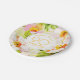 Classic floral pattern of old wild roses and peonies on bistre background. Very ordy vintage graphics with texts into a white round shape on customizable 90th birthday party paper plate. You can easily change text (font, size, color and position), design and shape (size and position) by clicking the "edit using Design tool button". Matching products for birthday: paper napkin, guest book, Thank you favor box ... und birthday ohrs with monogram: mug, luggage, luggage tag, pillow, cases and more ... Don't forget the whole collection of vintage floral patterns for birthday.