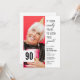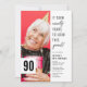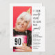 Feiern Sie stilvoll mit diesen modernen Einladungen zum 90. Geburtstag mit einem schicken, weißen Hintergrund, einem Foto des Geburtstagsjungen/-mädchens, dem lustigen Sprichwort "es hat neunzig Jahre gedauert, so gut auszusehen!" und einer einfachen Textvorlage, die leicht zu personalisieren ist.