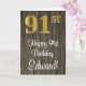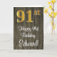 Dieses stilvolle, elegante und luxuriöse Geburtstagskarten-Design verfügt über eine große Ordnungsnummer "91.", die ein goldenes Aussehen mit Imitaten/Imitationen hat, sowie die Geburtstagsgrüßbotschaft "Happy 91. Geburtstag" und einen individuellen Namen in einem Schriftart im Skriptstil auf der Vorderseite. Der Hintergrund der Vorderseite hat ein holzinspiriert Imitat. Die Innenseite verfügt über eine benutzerdefinierte Geburtstagsgrüßbotschaft oder könnte gelöscht und leer verlassen werden, wenn eine Nachricht von Hand geschrieben werden soll. Eine ausgeklügelte Geburtstagskarte wie diese kann zum Feiern des einundneunzigsten Geburtstags geschickt werden. [~Z0000519]