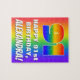 Dieses fröhliche und fröhliche Jigsaw Puzzle-Design zeigt eine große Zahl "91" mit einem farbenfrohen Regenbogenspektrum inspiriert Farbverlaufsmuster, zusammen mit der Meldung "HAPPY 91. BIRTHDAY" und einem personalisierten Empfängernamen. Der Hintergrund zeichnet sich durch ein lebendiges, mehrfarbiges Regenbogenspektrum aus, das durch ein inspiriertes Farbverlaufsmuster gekennzeichnet ist. Ein spannendes, bearbeitbares Geburtstagsrätsel wie dieses könnte dazu verwendet werden, jemandes einundneunzigsten Geburtstag zu feiern. [~Z0000569]